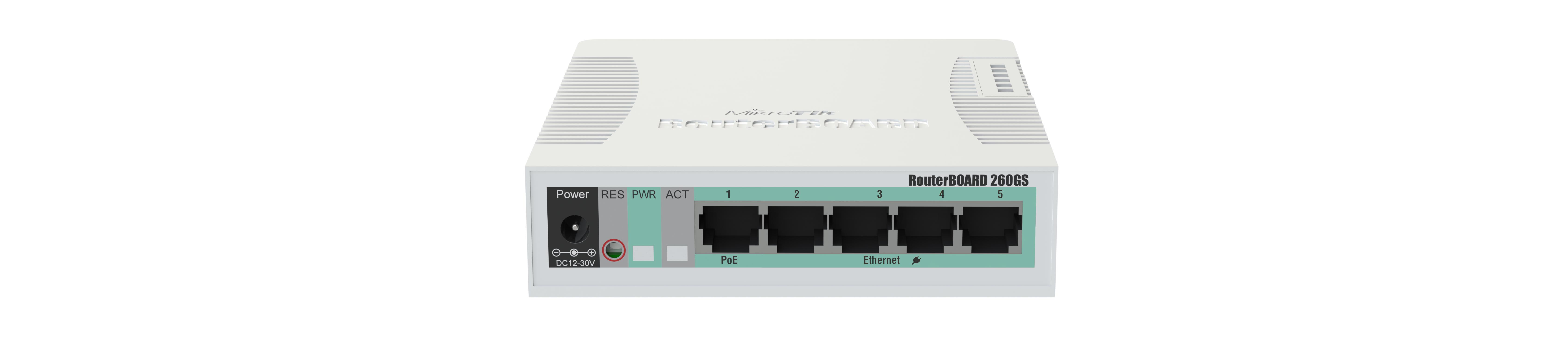 MikroTik RB 260GSP Soho Switch üzerinde bulunan 5 adet 10/100/1000 Gigabit Ethernet girişlerinden ilk ethernet portu, Data bağlantısı ve ihtiyaç dahilinde POE adaptör beslemesi için ayrılmıştır, ayırca Ürün üzerinde 1 adet 1.25G SFP portu bulunmaktadır. Mikrotik SwOS işletim sistemi ile birlikte gelen Mikrotik 260GSP standart Swtich özelliklerinin yanısıra Port-to-port fowarding, Broadcast Storm Control, MAC filtreleme, VLAN, Traffic mirroring, bant genişliği sınırlama gibi ilave özellikler sunmaktadır.